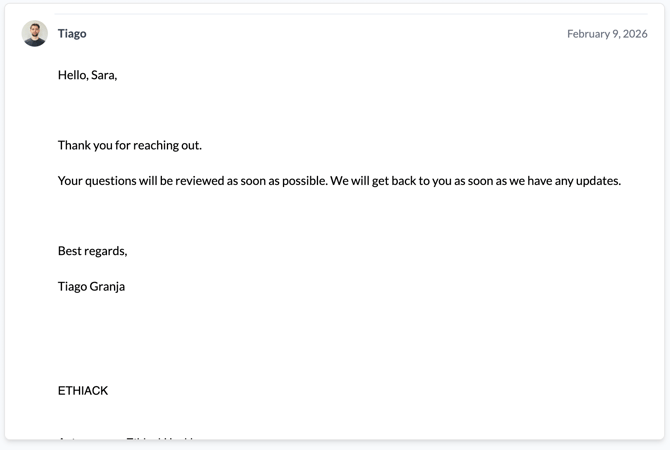 - Can I still use support@ethiack.com to open ticket? You can, and you will see the ticket listed in the Portal.