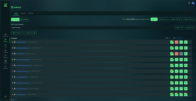The ‘Assets’ tab has evolved! It is now called ‘Surface’. This name change reflects its true function: providing a comprehensive representation of your client attack surface that Ethiack has found and continuously tested.